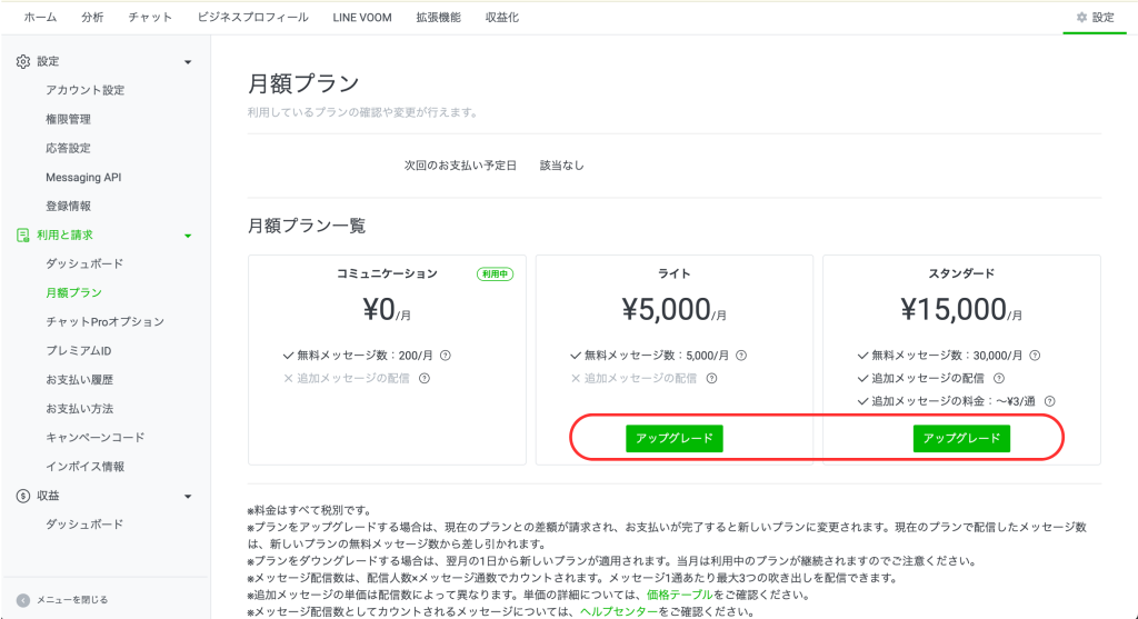 現在の無料分(または5,000通分)を使い切っている場合、プラン自体をアップグレードします。