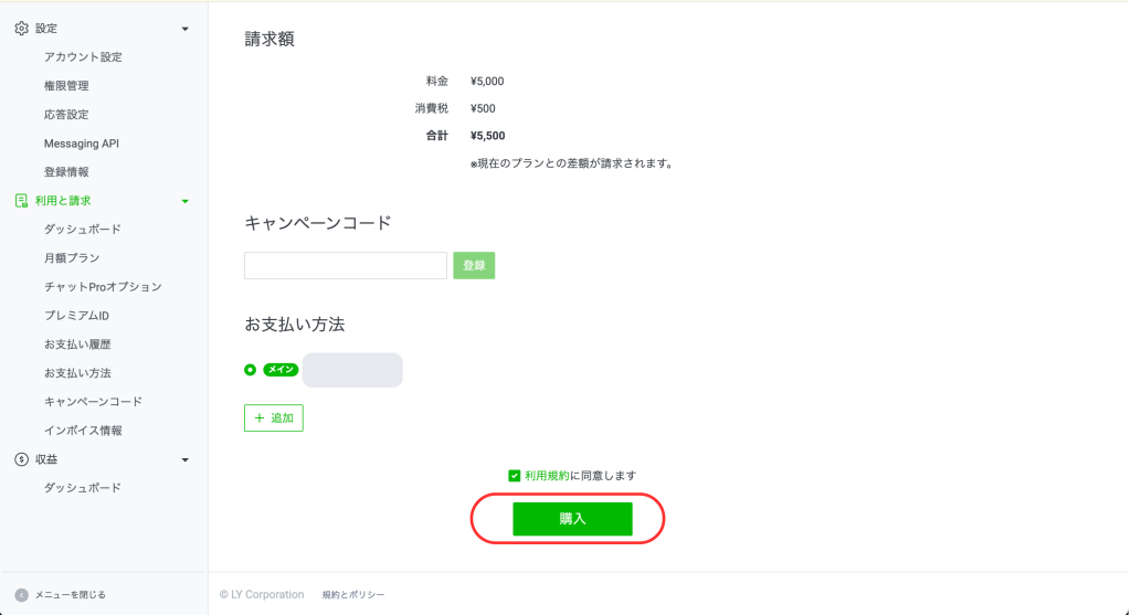 プラン料金は「毎月月初に前払い」ですが、追加メッセージ料金は「月末締め翌月10日頃後払い」となりそれぞれ支払いサイトが異なります。