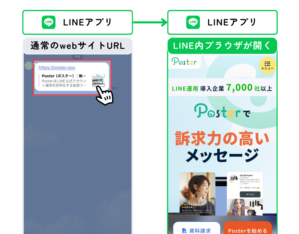 LINEアプリを開いたまま、スムーズにwebページの表示ができるのでLINE公式アカウントのトーク画面からの離脱を防ぎやすいことがメリットです。