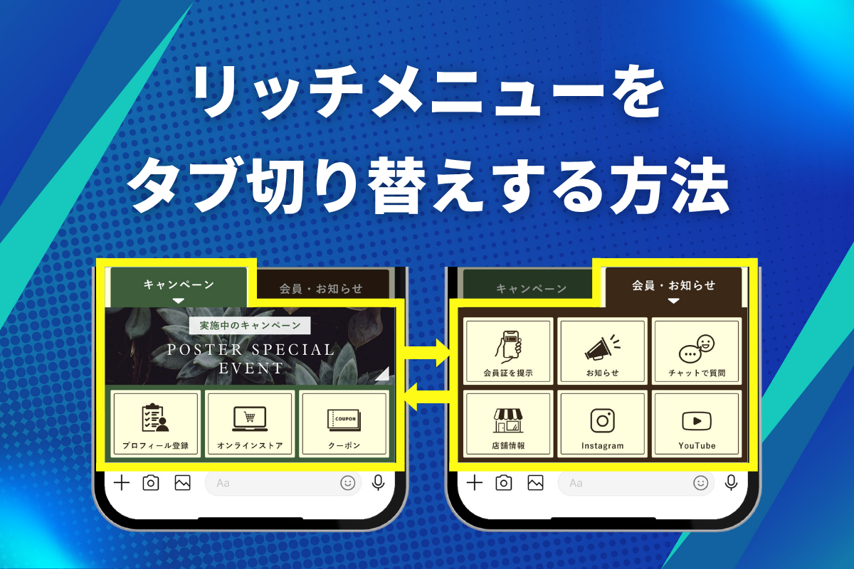 また、複数枚のリッチメニューを設定して、リンクで繋げてタブ切替風のメニューも簡単に作成できます!