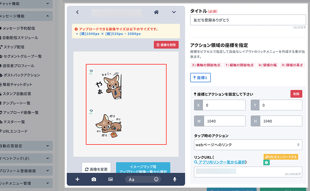 作成するリッチメニューには、自分のスタンプをキャラクターとして載せて作るといいでしょう。