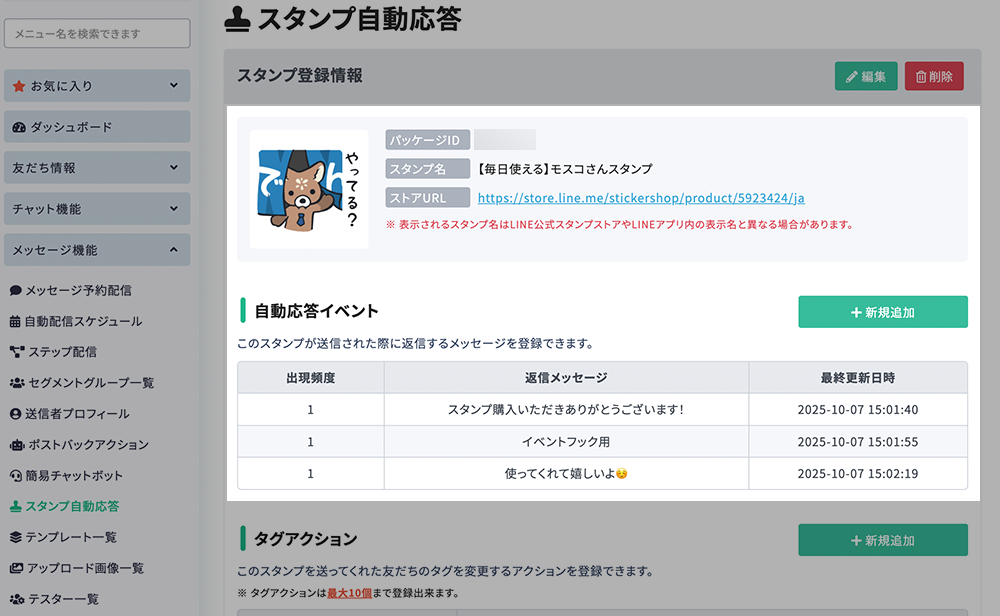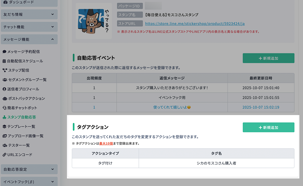 また、スタンプを送ってくれた友だちにタグ付けをすれば、後々そのタグが付いている友だちだけに配信するといったことも可能です。