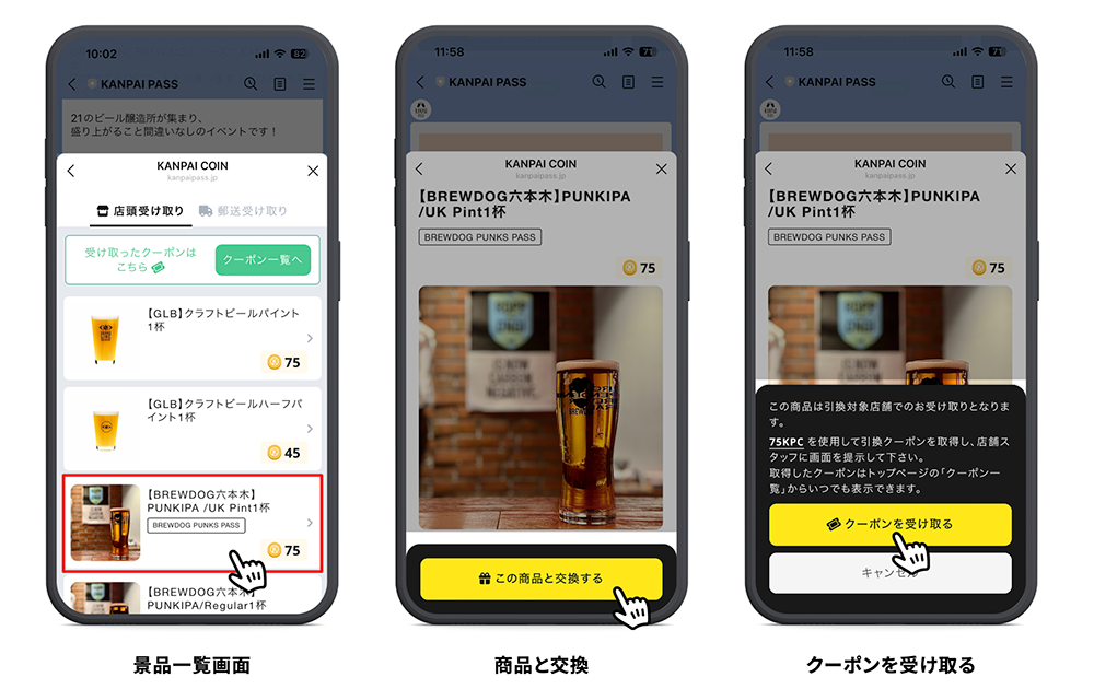 ビアバー・タップルーム・酒販店来店でビールや景品と交換できるオリジナルのポイント(KANPAI COIN 略してKPC)が貯まるデジタル会員証を提供。公式LINEアカウントに友だち登録するだけでデジタル会員証を取得でき、ポイントはビール無料クーポンやオリジナルグッズと交換可能できます。