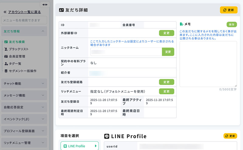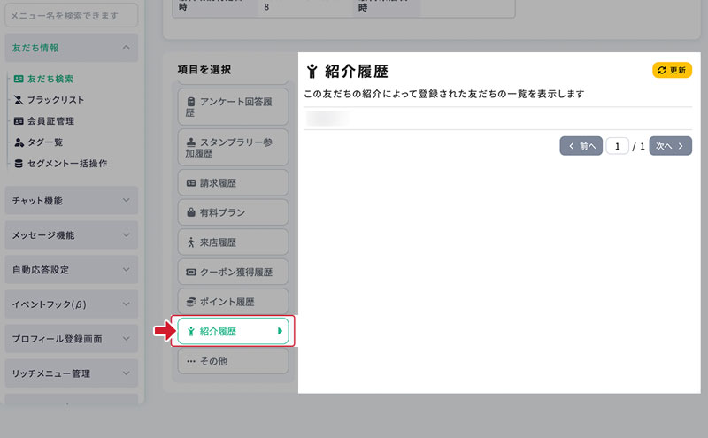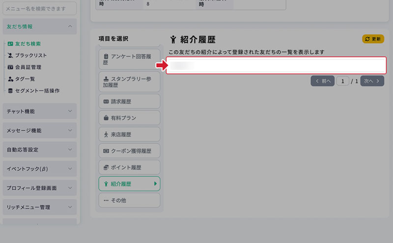 一覧には、この友だちの紹介によって登録された友だち名が表示されます。