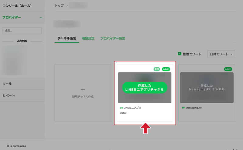 LINE Developers にログインし、作成済みのプロバイダーを選択します。
