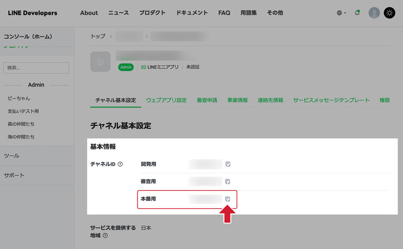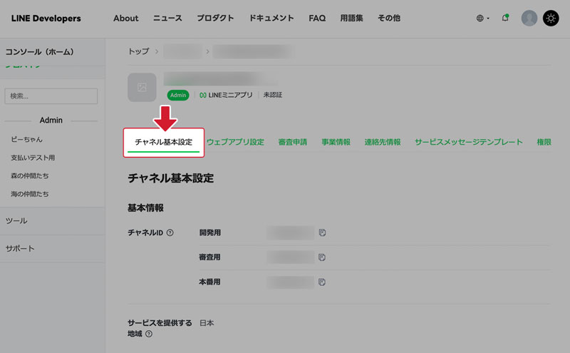 【LINEミニアプリ】チャネルIDの確認方法