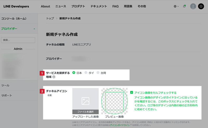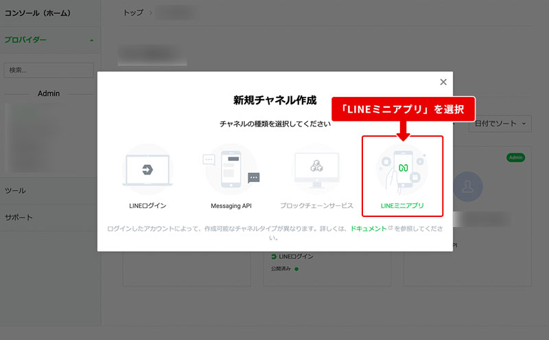チャネルの種類は「LINEミニアプリ」を選択します。