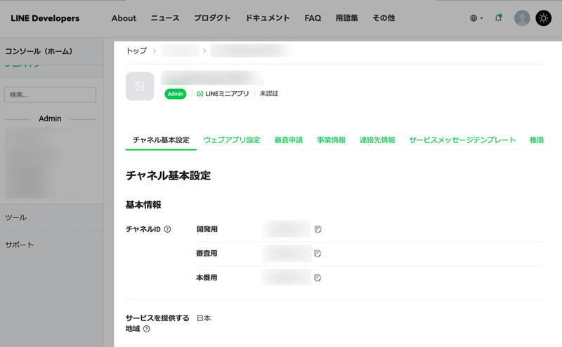 LINEミニアプリの設定手順(チャネル連携)へ -