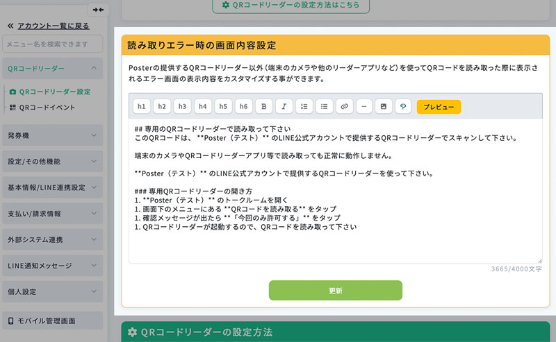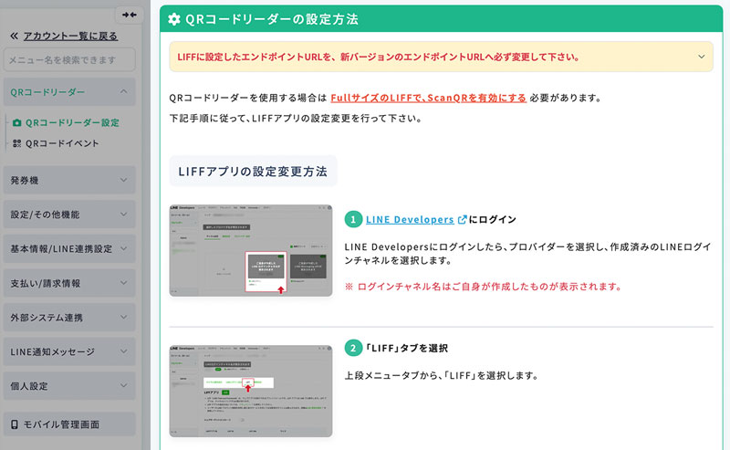QRコードリーダーを使用する場合は、Posterに登録した「Full」サイズのLIFFの設定を一部変更する必要があります。