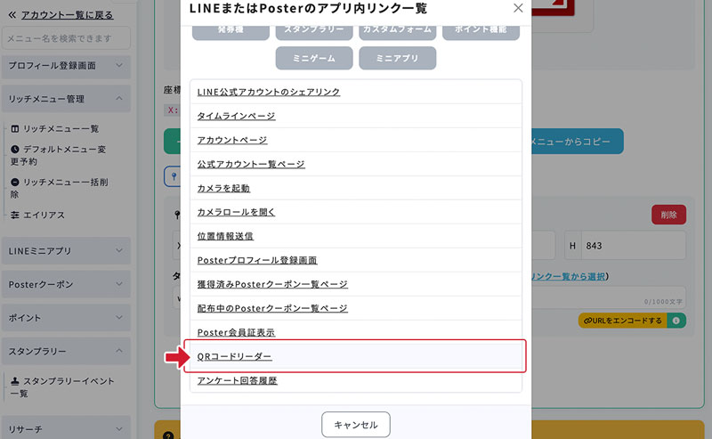 4.リッチメニューにQRコードリーダー起動URLを設定