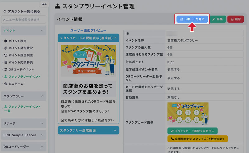 一覧からレポートを確認したいスタンプラリーイベントを選択します。