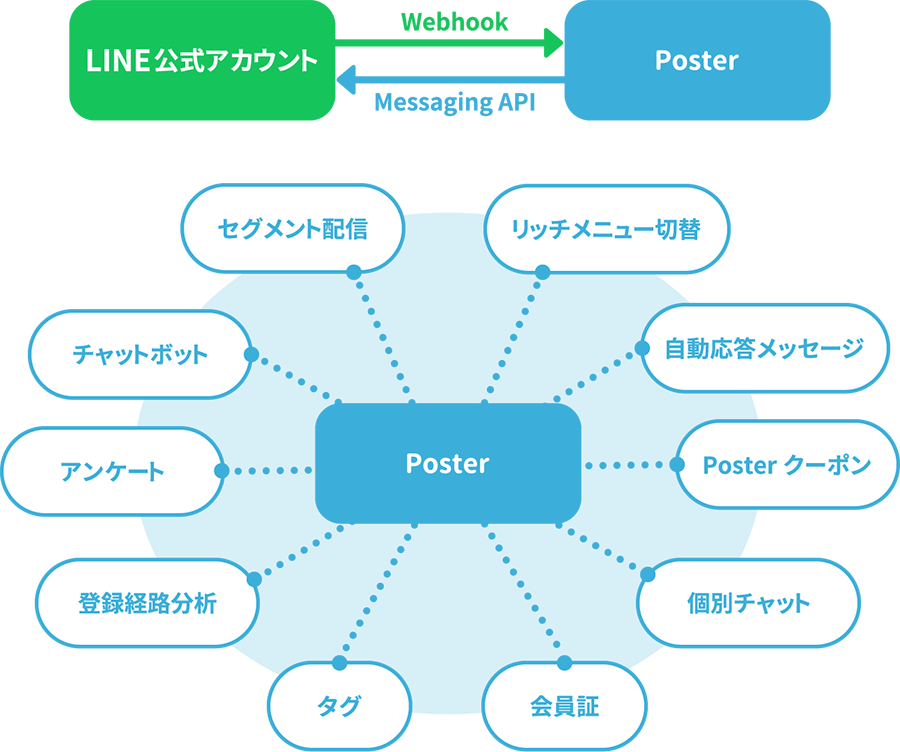 LINE公式アカウントだけでは実現できない機能や要望に対してPosterを使って応えることができるので提案の幅も広がります。