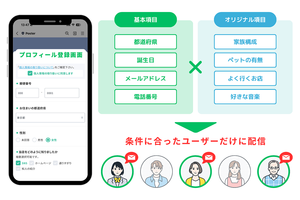 Posterでは独自のプロフィール登録画面を利用することで、さらに細かなターゲティングが可能になります。