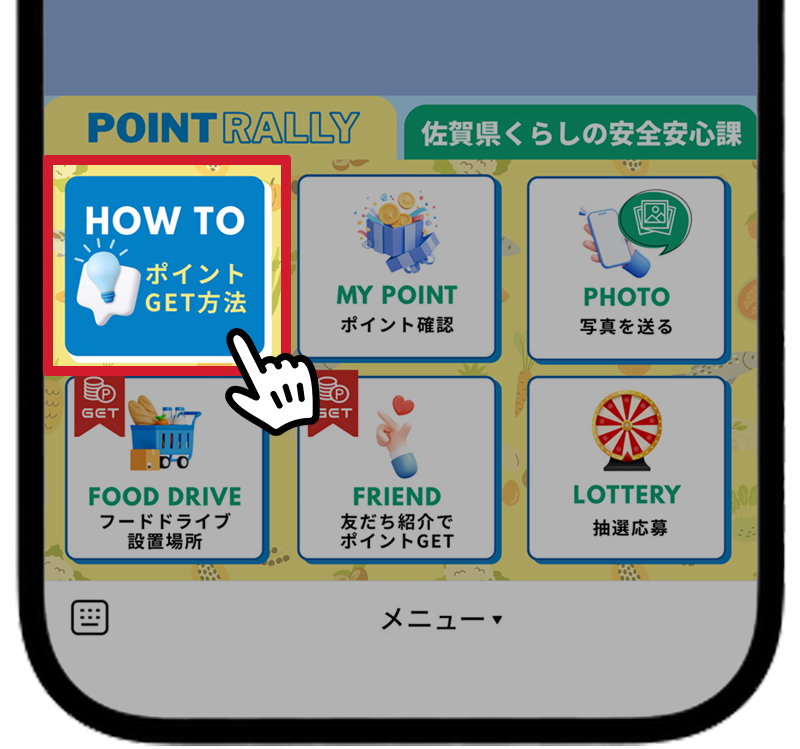 ①「HOW TO ポイント」をタップすると、