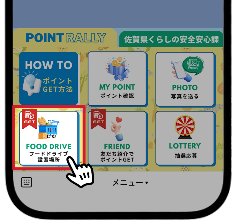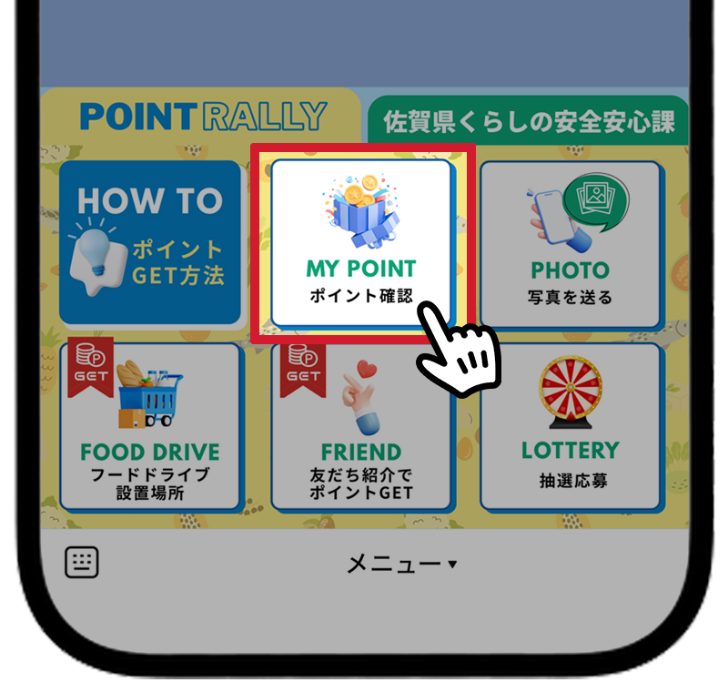 1つ目はイベント用ポイントラリー、2つ目のタブはイベント主催の『佐賀県くらしの安全安心課』の情報を伝えるものとなっています。